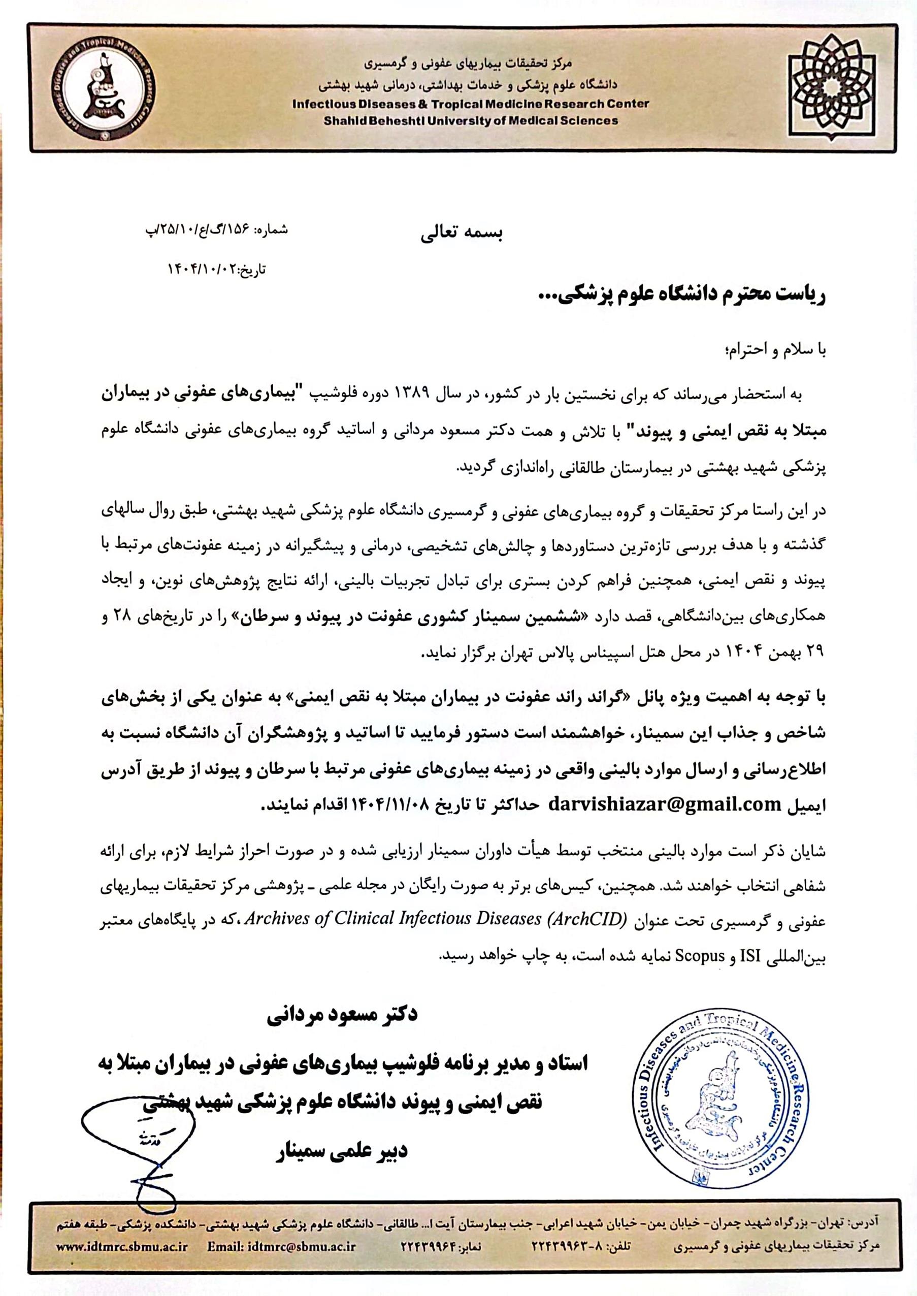 به گزارش روابط عمومی دانشکده پزشکی ششمین سمینار کشوری عفونت در پیوند و سرطان گروه خبری : اطلاعیه ها کد خبر : 23675 کلمات کلیدی