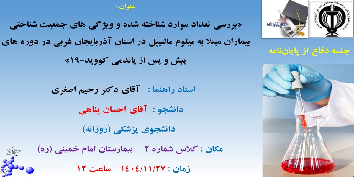 به گزارش روابط عمومی دانشکده پزشکی جلسه دفاع از پایان نامه آقای احسان پناهی گروه خبری : رویدادهای علمی کد خبر : 24666 کلمات کلیدی
