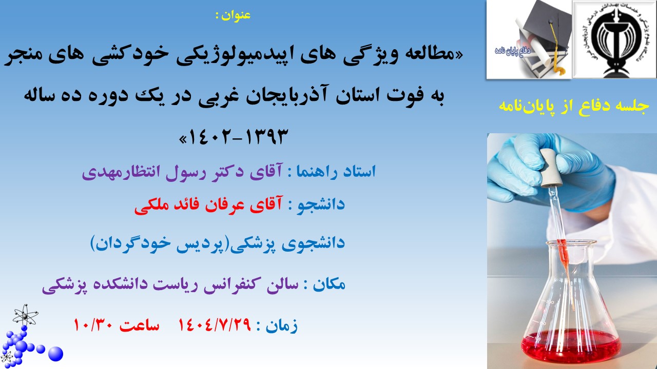 به گزارش روابط عمومی دانشکده پزشکی جلسه دفاع از پایان نامه آقای عرفان فائد ملکی گروه خبری : رویدادهای علمی کد خبر : 21245 کلمات کلیدی