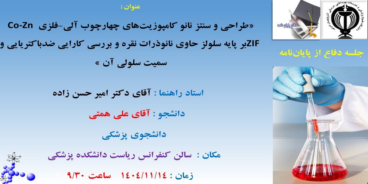 به گزارش روابط عمومی دانشکده پزشکی جلسه دفاع از پایان نامه آقای علی همتی گروه خبری : رویدادهای علمی کد خبر : 24318 کلمات کلیدی