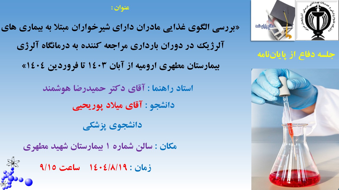 به گزارش روابط عمومی دانشکده پزشکی جلسه دفاع از پایان نامه آقای میلاد پوریحیی گروه خبری : رویدادهای علمی کد خبر : 22045 کلمات کلیدی