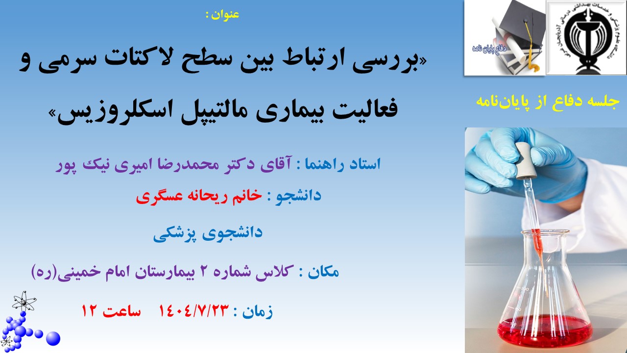به گزارش روابط عمومی دانشکده پزشکی جلسه دفاع از پایان نامه خانم ریحانه عسگری گروه خبری : رویدادهای علمی کد خبر : 20940 کلمات کلیدی